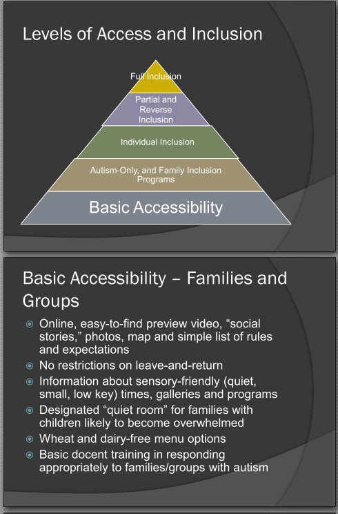 In just the past few years, interest in including individuals with autism spectrum disorders in museums has grown – and so has grant funding. A staff-training and program-development project funded by the Institute of Museum and Library Services is now underway in Boston, and an IMLS-funded project is getting started in Philadelphia. Corporate and foundation-funded autism access events are taking place across the country. Google “autism museum” and you’ll find dozens of such happenings. If you’re considering access or inclusion for your museum, you’re in the right place at the right time.